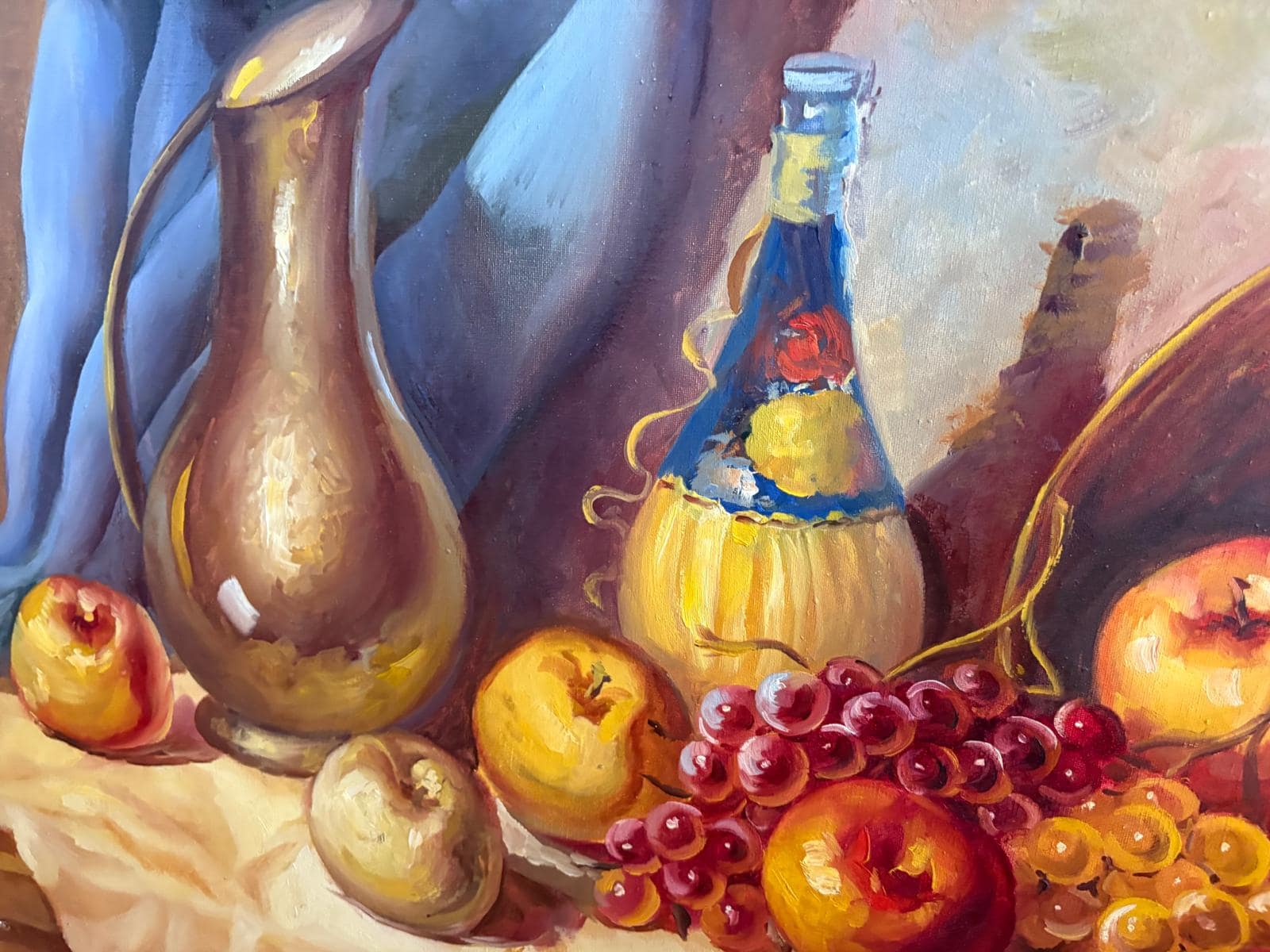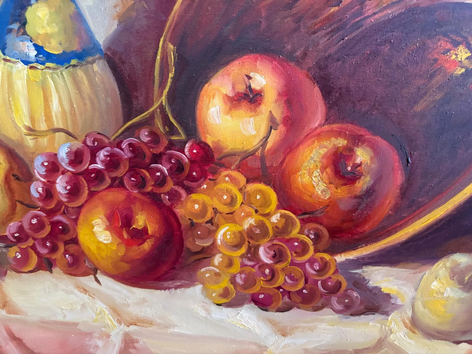 - Impasto en les zones de llum (reflexos sobre el metall i les fruites)