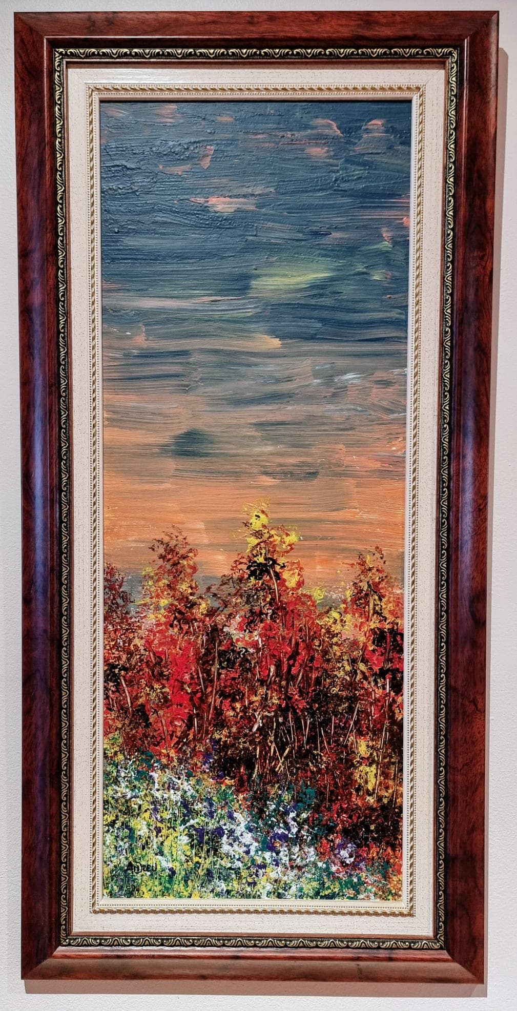 Este cuadro transmite una gran sensación de calma y belleza natural, pero también una cierta intensidad emocional por el uso de colores vivos y contrastados.