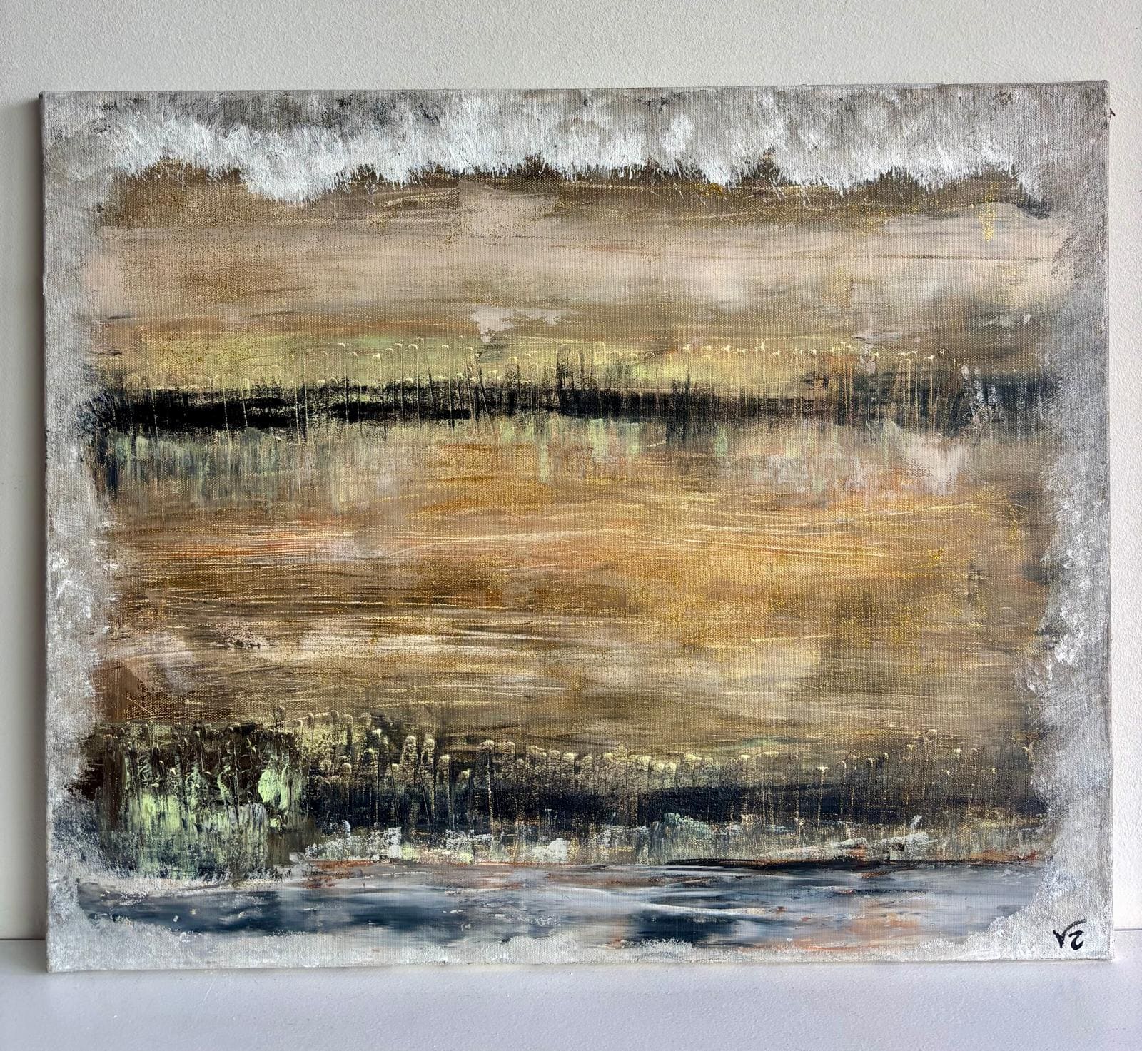 sugieren una atmósfera terrosa y metálica, casi como un paisaje abstracto en transición