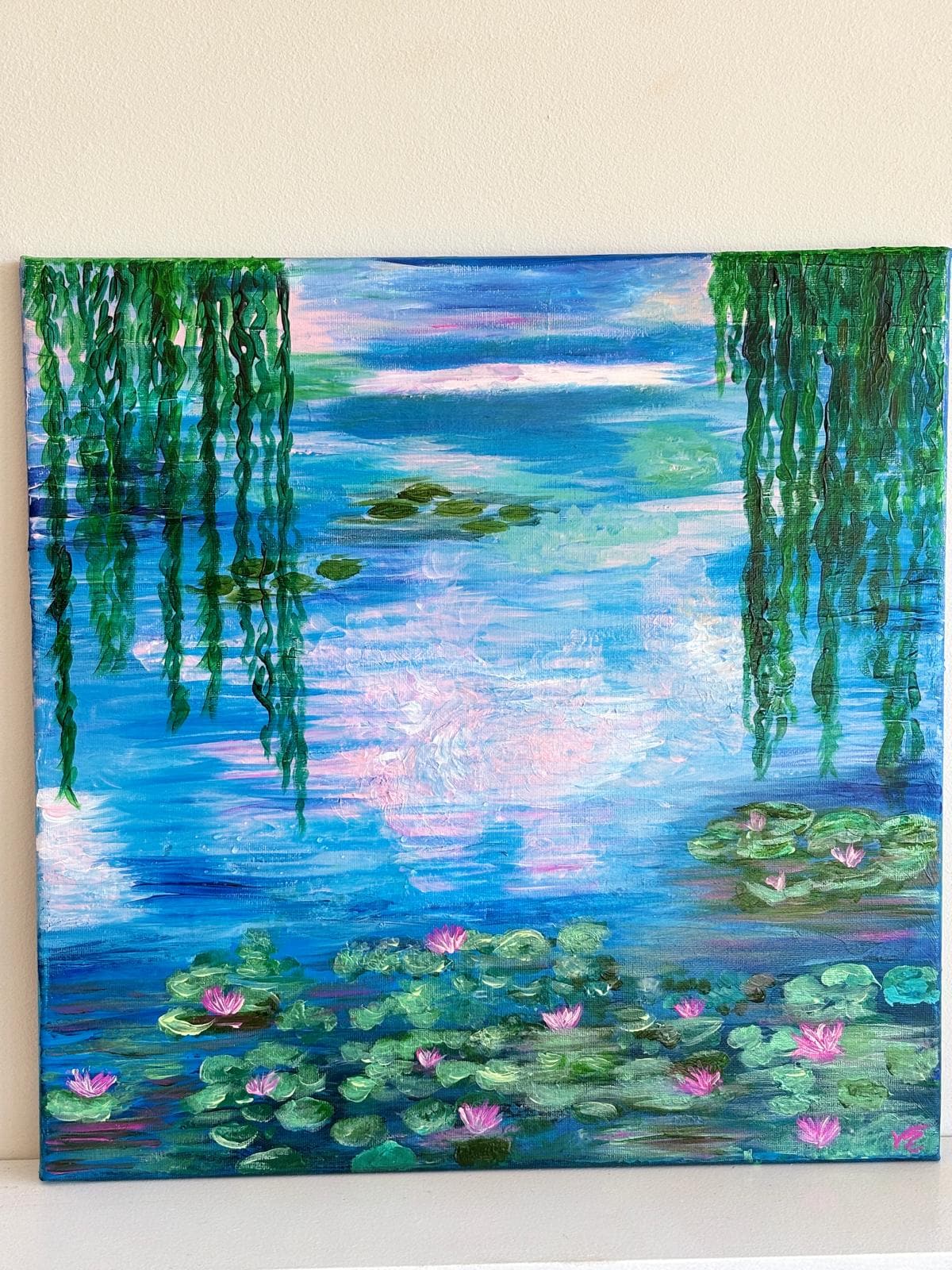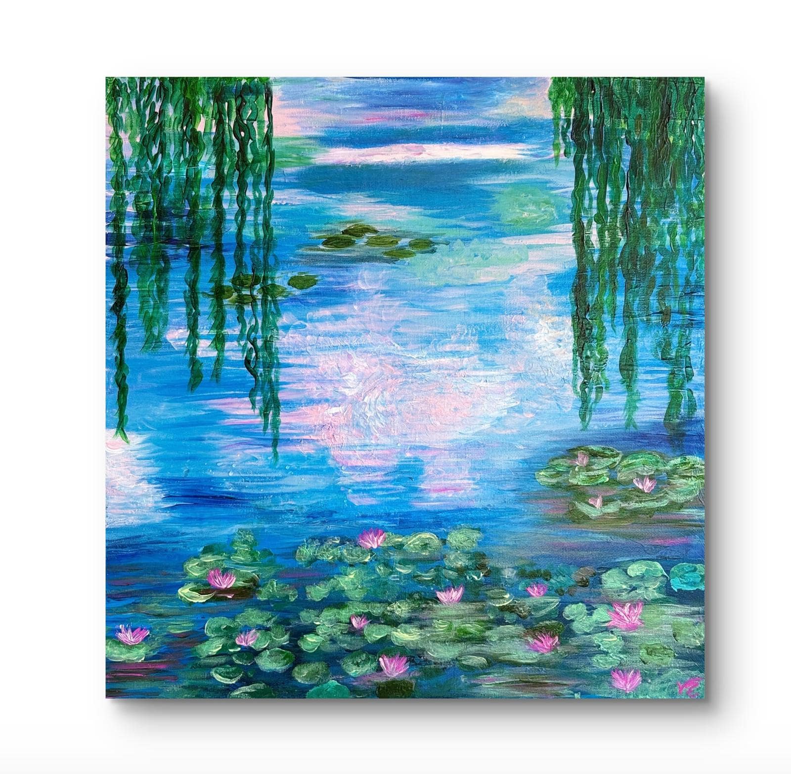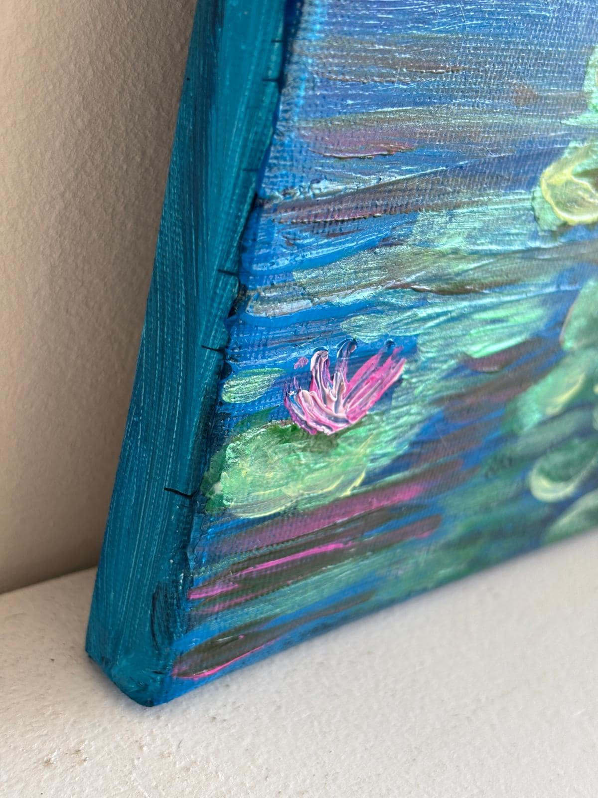 Esta pintura captura la serenidad de un momento de calma, donde el agua, la luz y los nenúfares se funden en suaves pinceladas. Inspirada en el impresionismo y pintada desde la emoción, es una obra creada para transmitir paz, equilibrio y una sensación de silencio delicado. Un pequeño refugio de luz y color, diseñado para llenar tu hogar de armonía.